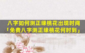 免费八字测正缘桃花 🐝 何时到属于迷信行为,缺乏科学依据八字。算,命。的说法尚未被科学证实 🐧 不能作为准确预测个人运势的依据