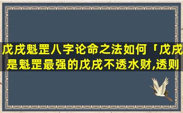 三 🍀 、戊戌魁罡 🌾 八字论命之法