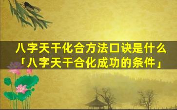 八 🐠 字 🌷 天干 🐳 合化成功的条件: