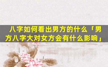 在传统命理学中,认为男方的 🦄 八字对女方 🌻 会有以下影 🐵 响: