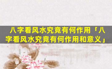 八字看风 🐺 水的 🦍 作 🐶 用和意义