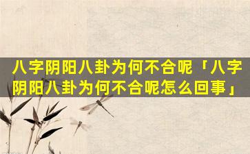 八 🦢 字阴阳八卦中没有“不合”的说法八字 🌿 阴阳。和八卦、是不同的概念: