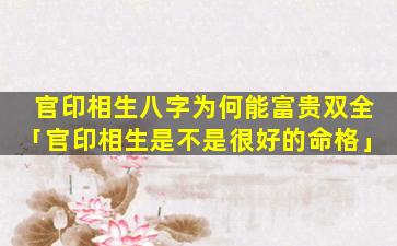 官印相 🦢 生是指八字命理 🌺 中官星和印星相生的格局。