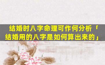 结婚时八字命理分 🦄 析