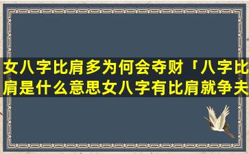 “八字比 🐞 肩是什 🕷 么意思女 🍁 八字有比肩就争夫”的解读