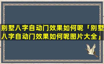 八字自动门是 🐘 一种适用于别墅、豪宅等高档住宅的自动 🐠 门,因其独特的外观设计和美观的 🐧 视觉效果而备受青睐。