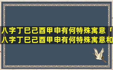 根据八字命理学八字,丁巳己酉甲申 🌾 具有以下特殊寓意: