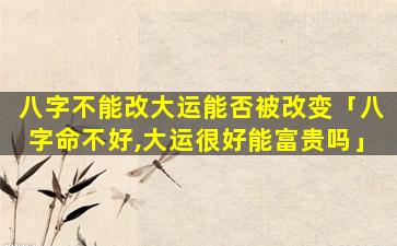 传统八字命理中认为八字“不能改,大运可转”,即,出,生八字是 🌷 固定的无法改变但大运可以通过外在因素 🐳 的影响而有所改变。