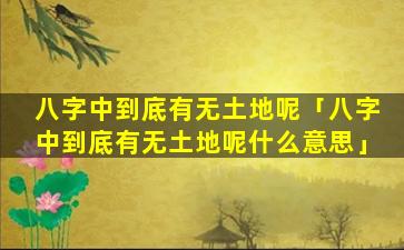 “八字中到 🐎 底有无土地呢”这句话的意思是:在八字中是否存在代表土地属性的地支。