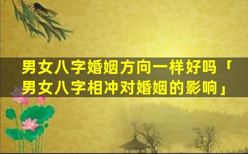 根据传统命理学观点 🌾 ,男,女八字婚 🐦 姻方向 🪴 相同与否对婚姻好坏的影响说法不一存在多种不同的看法: