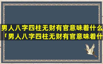 在八字命理学中,男 🕷 性八字四柱无财有官 🐼 意味 🕸 着: