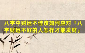 八字 🐛 中财运不佳的应 🐅 对 💐 措施: