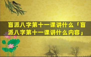 盲派 🐕 八字第十一课讲授 🌺 的内容: