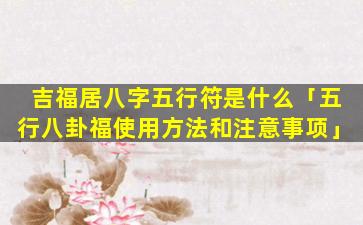 吉福居八字五行符是一种根据八字五行命理学制作的符咒 🐳 ,用,于平衡个人 🐦 五行能量改善运势和化解不利因素。