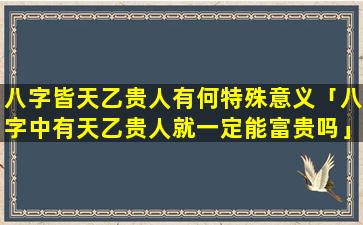 八字中有天乙贵人,表,示命主有贵 💮 人相助为人处世有智慧和谋略。但,是天乙贵人,只。是一个辅助星能否富贵还要看整体八字格局以及其他因素的影 🌸 响