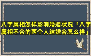 需要注意的是,八,字属相仅仅是影响婚姻状 💐 况的一个因素个人的性格、家、庭环境社会因素等也会产生影响因。此,仅。凭八字属相来判断婚姻状况是不够全面的