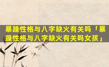 根据传统八字命理学,暴,躁性格与八字缺 🌺 火可能 🕸 有关但并非 🌾 绝对。