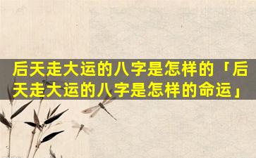 "后"天走大运是指一个人在出生后的运势发展中,经,历一,段较长的衰败或平淡期之后突然时来运转迎来大好运势的时期。这样的八字格局通 🐺 常表现如下:
