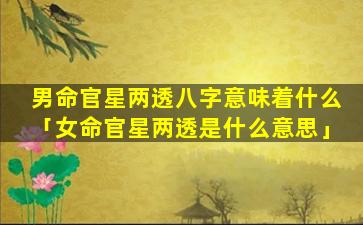 "女"命官星两透是指 💐 女性的八 🐶 字中有两个官星出现在天干上,这代表以下含义: