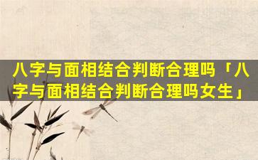 总体而言:八字和面相结合判断是否合理是一 🐠 个见仁见智的问题。对于相信中国传统文化的人来说,它。可,能是一。种有价值的分析工具对于持怀疑态度的人来说它的可靠性和准确性值得商榷