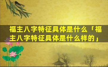 常 🌾 见的福 🌷 主 🕊 八字特征: