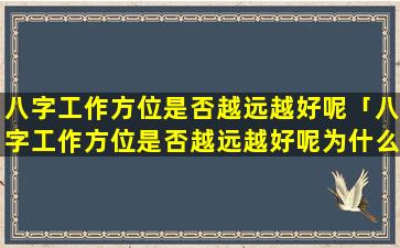 八字工作 🍀 方位是 🌼 否 🐳 越远越好?