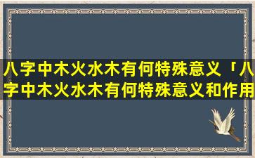八 🐼 字中“木火水木”的组合具有特殊的意 🌵 义和作 🐧 用,代表着以下几种情况: