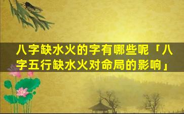 八字中 🦉 五 🐯 行缺水火 🕷 的影响
