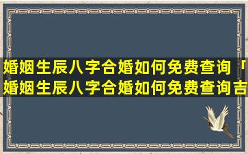 免费 🐶 查 🦈 询婚姻生辰八字合婚的 🐈 方法: