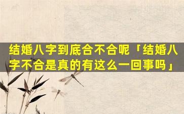 八字合婚仅供参考,不能完全决定 🌾 婚后运势。