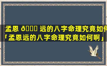 孟恩远的八字命理信息 🐺 尚未 🦉 公开,因此无法提供准确的信息。