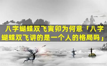 在八 🐝 字中,“蝴蝶双飞”是,指八字中同时出现寅卯表示命主有旅行、漂泊或异乡缘 🐞 的迹象。