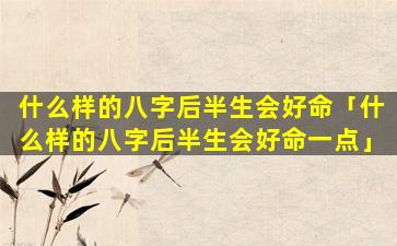 需要注意的是,八,字,后半生是否好命还需要结合大运和流 🐳 年来看仅凭八 🦁 字本身无法完全判断。