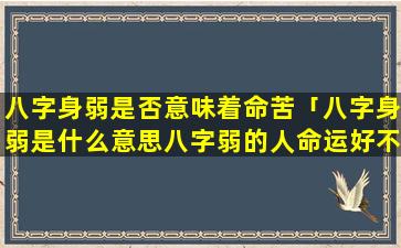 八字身弱不 🕷 一定意味着命苦,具体要看八字的整体格局和用 🐅 神的情况。