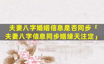 夫 🦁 妻八 🦈 字婚姻信息是否同步