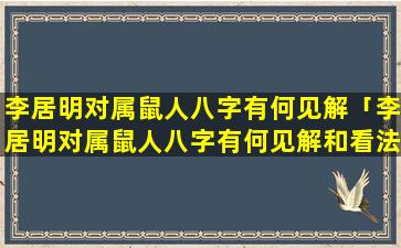 李 🦄 居明对属 🌼 鼠人八字的见解和 🌾 看法