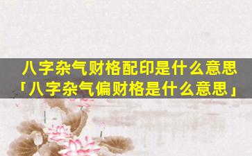 八字 🐞 杂气财 🐧 格配 🐡 印的意思是: