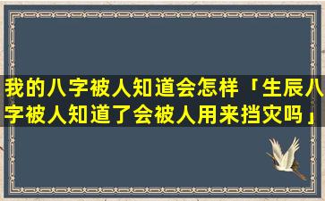 在命理学的角度,生,辰八字是一个人固有的信息并不会因为别人知道而改变而。挡 🕸 ,灾,属。于玄学范畴无法用科学解释