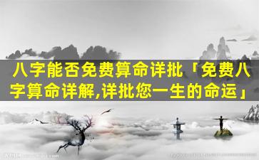 免费八字算命详 🐕 批的服务通常存在一定的局 🐋 限性和准 🦍 确性问题。