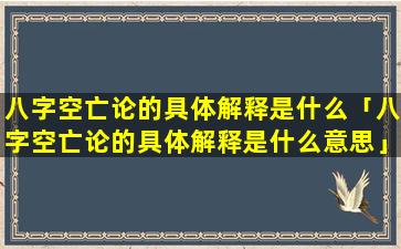 空亡的含义空亡的八字表示命主在人生的各个方面都 🐎 会遇到空虚、失、落、迷、茫孤 🦅 独挫折等 ☘ 不利情况: