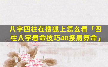 四柱八 🍀 字 🌿 看命技巧 40 条易算命