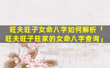 旺夫旺子女命八 🌵 字 🦉 解 🐟 析