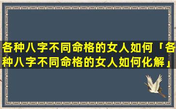 八字不同命 🌾 格的女人化 🐼 解方 🐎 法