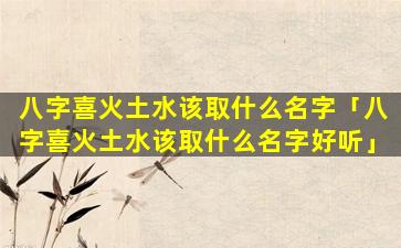 适合 🦄 八字喜火土水且好 💐 听的 🐋 名字: