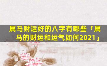 总体:属马人在2021年的财运较为稳定,虽,然没 🦄 有大起 🦁 大落但也会有稳定的收入。
