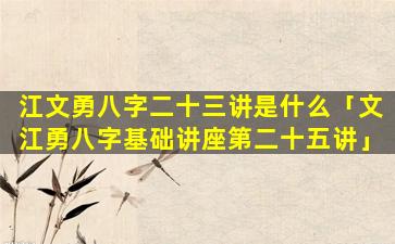 文江勇 🐅 八字基础 🌵 讲座 🐯 二十八讲