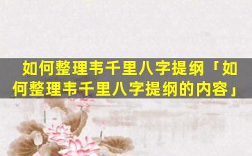 韦 🌷 千里八字提纲分 🌲 类与整理方法