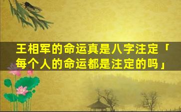 对于“每个人的命运都是注定的吗的”问题 🐬 ,没,有明确的答案因为这涉及到自由意志和宿命的哲 🐞 学争论。