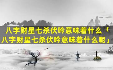 八字中财星七杀伏吟,是指在八字的年、月、日、时,四,柱中财星和七杀星同时出现在相同的柱位并且形 🦋 成相刑或相冲的情况。这种八字 🦊 格局在命理学上有以下几种 🐋 含义: