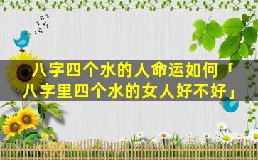 从命理学的角度来说,生,辰八字四个 🌲 水的 🐎 男人好不好需要具 🐠 体分析以下因素: